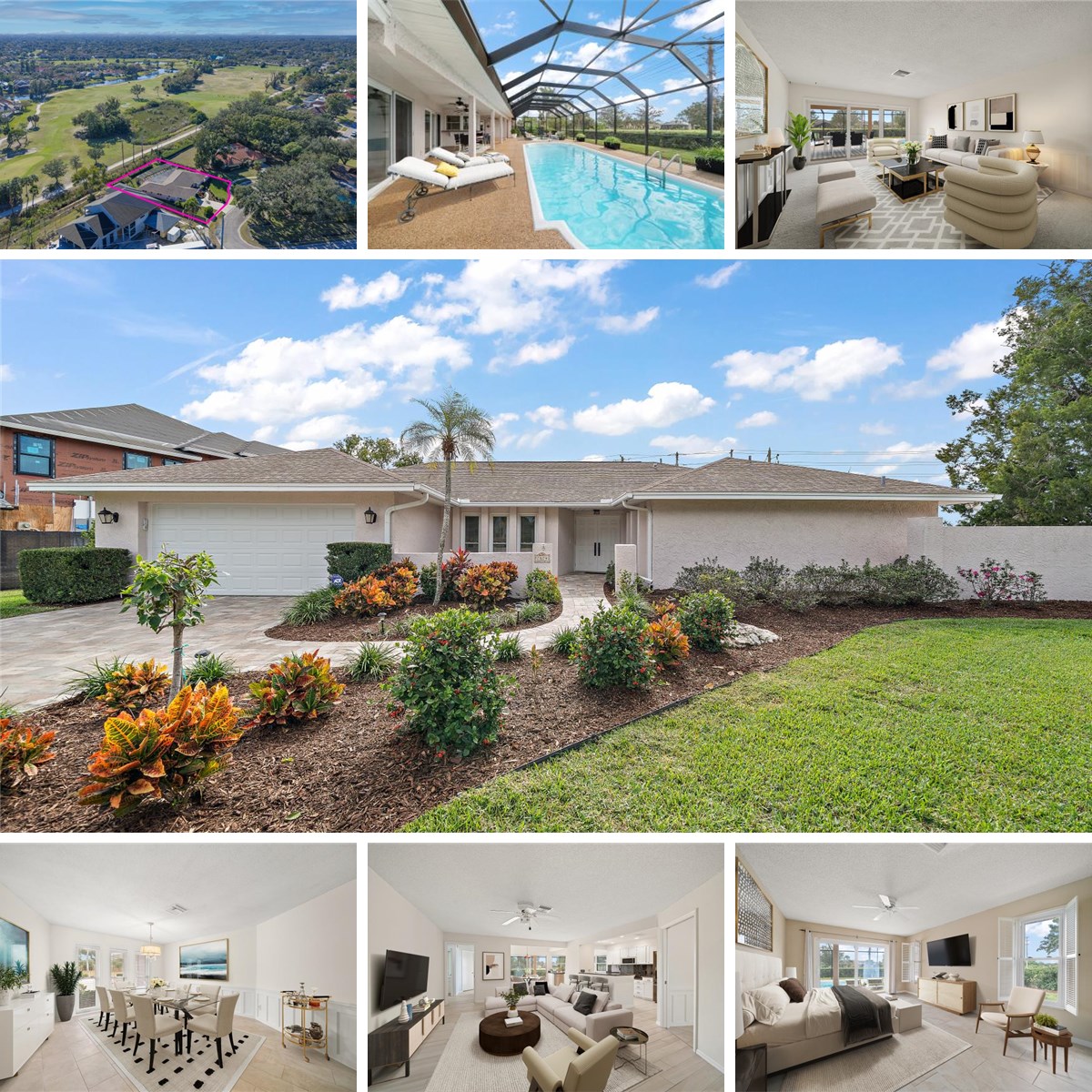 One or more photo(s) has been virtually staged. Tucked away on a quiet and private cul-de-sac in the desirable Bardmoor community, this move-in ready 4BR/2.5BA beauty unfolds like a retreat designed for both everyday comfort and effortless entertaining. A newly installed paver driveway sets the tone, guiding you past lush landscaping into a secluded front courtyard that hints at the serenity found within. Double entry doors open to a light-filled interior where wainscoting in the entryway creates a warm, welcoming introduction and draws you seamlessly toward the show-stopping family room. Here, a dramatic wall of sliders frames the sparkling pool, private backyard, and peaceful views beyond—an ever-changing backdrop of green space and Florida skies. The traditional floor plan offers balance and flow, with a sunlit dining room perfectly positioned adjacent to the kitchen for easy gatherings. At the heart of the home, the white dine-in kitchen blends function and style with abundant granite countertops, double ovens, generous workspace, and a large sink overlooking the pool—making even daily routines feel elevated. Sliders connect the kitchen directly to the enclosed pool and patio, creating a natural indoor-outdoor rhythm ideal for hosting friends or enjoying quiet evenings poolside. The spacious primary suite is a true sanctuary, featuring neutral tile floors, abundant natural light, and sliders that open directly to the pool. Two closets provide excellent storage, while the ensuite bath delivers spa-like relaxation with dual vanities and a beautifully appointed walk-in shower. Additional bedrooms, updated with new flooring in November 2025, offer ample closet space and share a large bath with a tub-shower combination. A well-designed laundry room with storage and sink, along with a conveniently located half bath, complete the interior. Thoughtful upgrades include a new HVAC system in 2023 and a pool resurfaced in 2022/2023, ensuring peace of mind and modern comfort. Set within a sought-after golf community and conveniently located near dining, shopping, beaches, and two airports, this home delivers privacy, polish, and a lifestyle that feels both relaxed and refined.